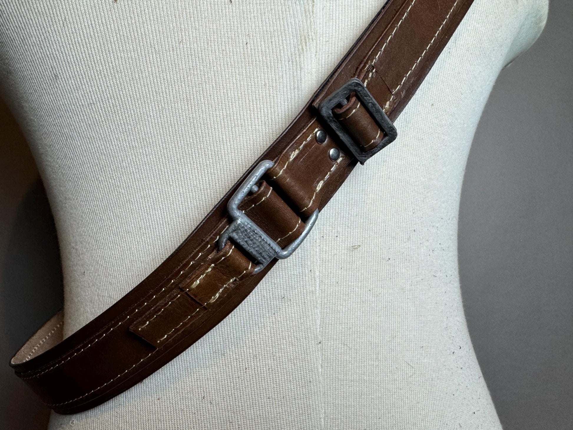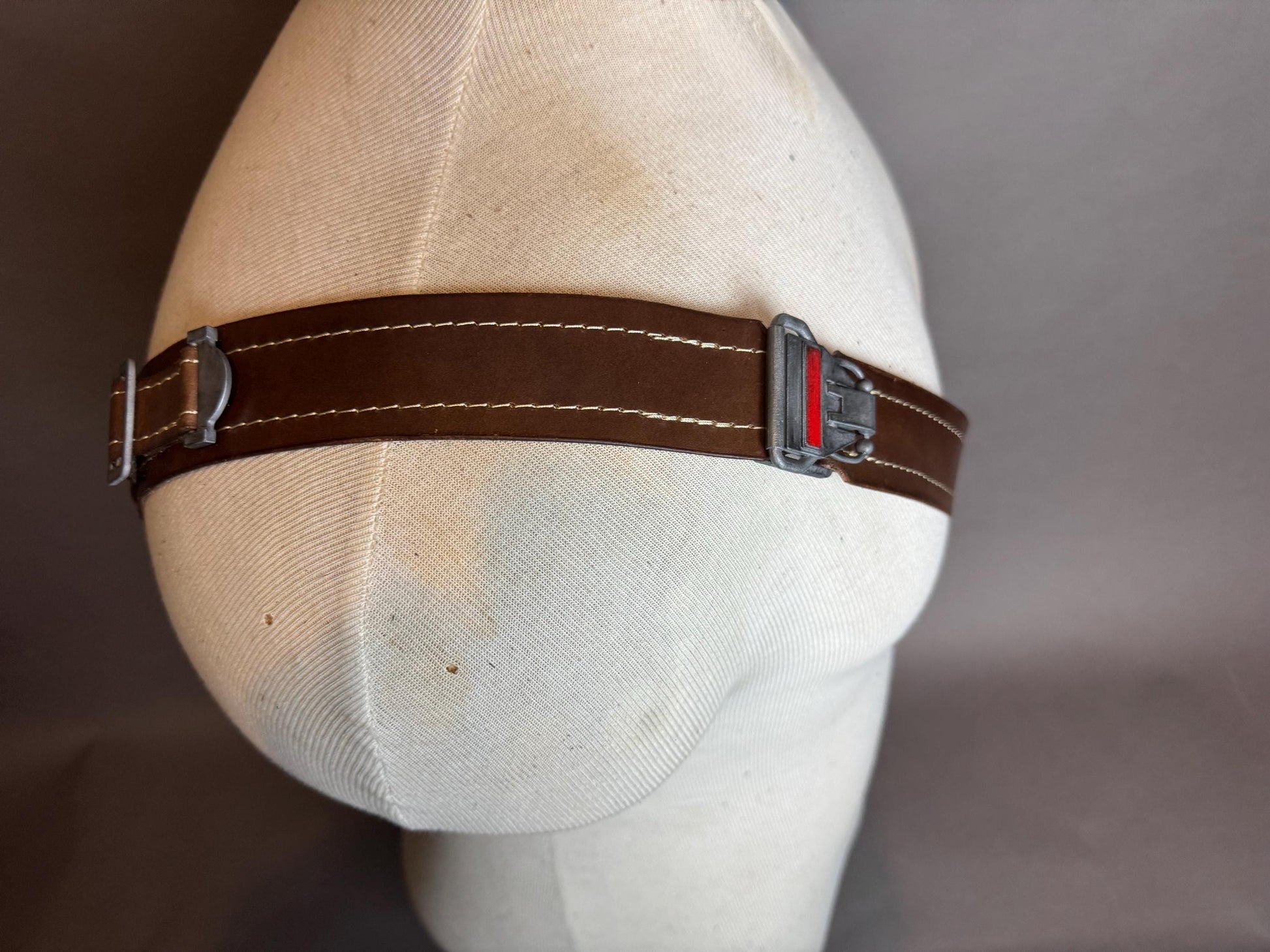 Leather shoulder harness includes 3D printed details, finished and painted. Hidden velcro closure in the back