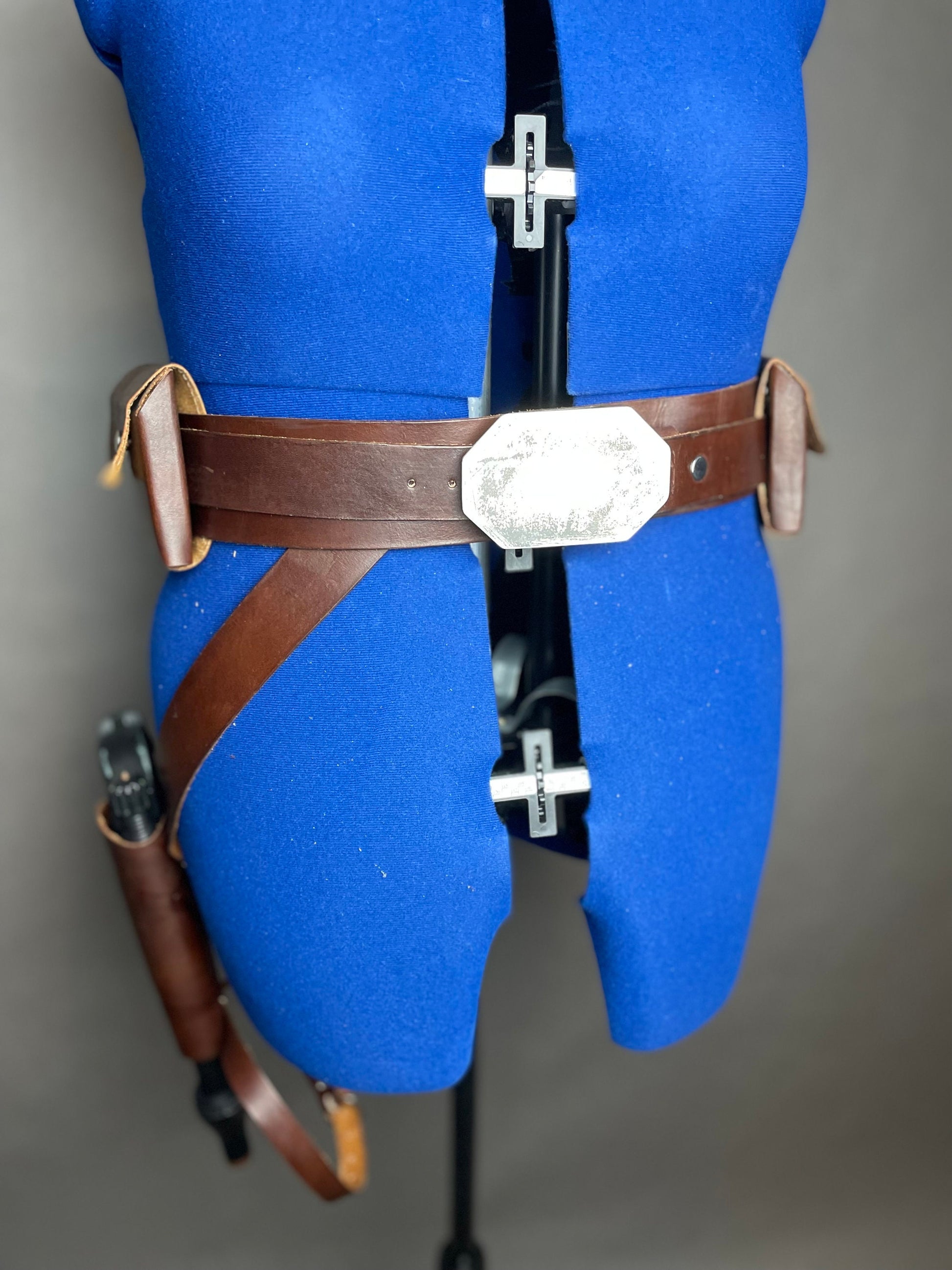Create your own Mando belt! This is a simple base design and features small pouches and a drop down Y holster to hold a Westar. Please contact before ordering to discuss options and design in more depth.