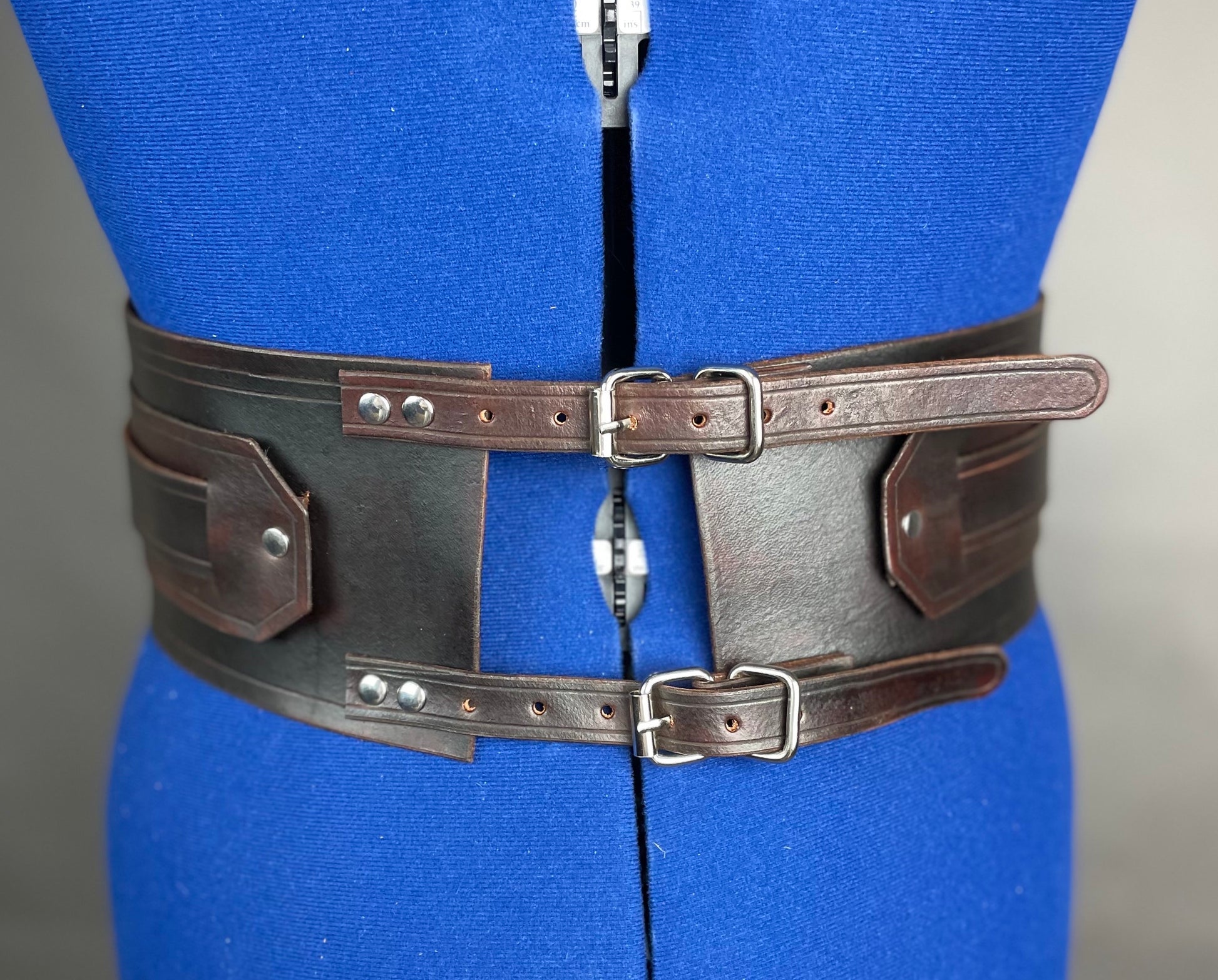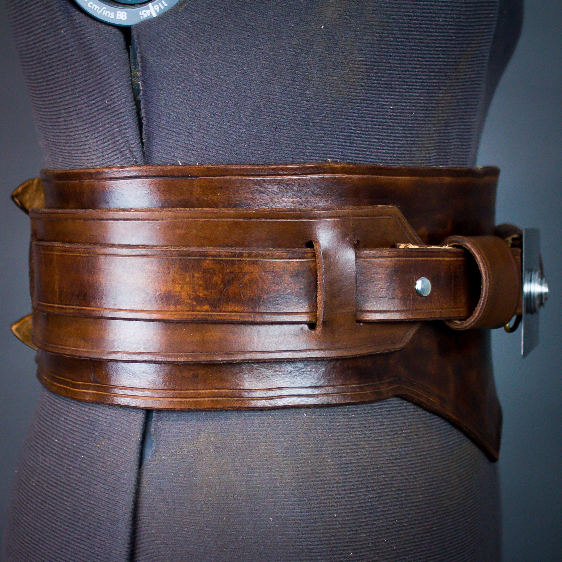 Option for both the Male and Female versions, and can be done in a range of colour- Medium Brown, Dark Brown, Black, Custom (let’s discuss!) The female version has the lower “V” point in the center, male version does not have the “V” point, instead it is a straight belt.