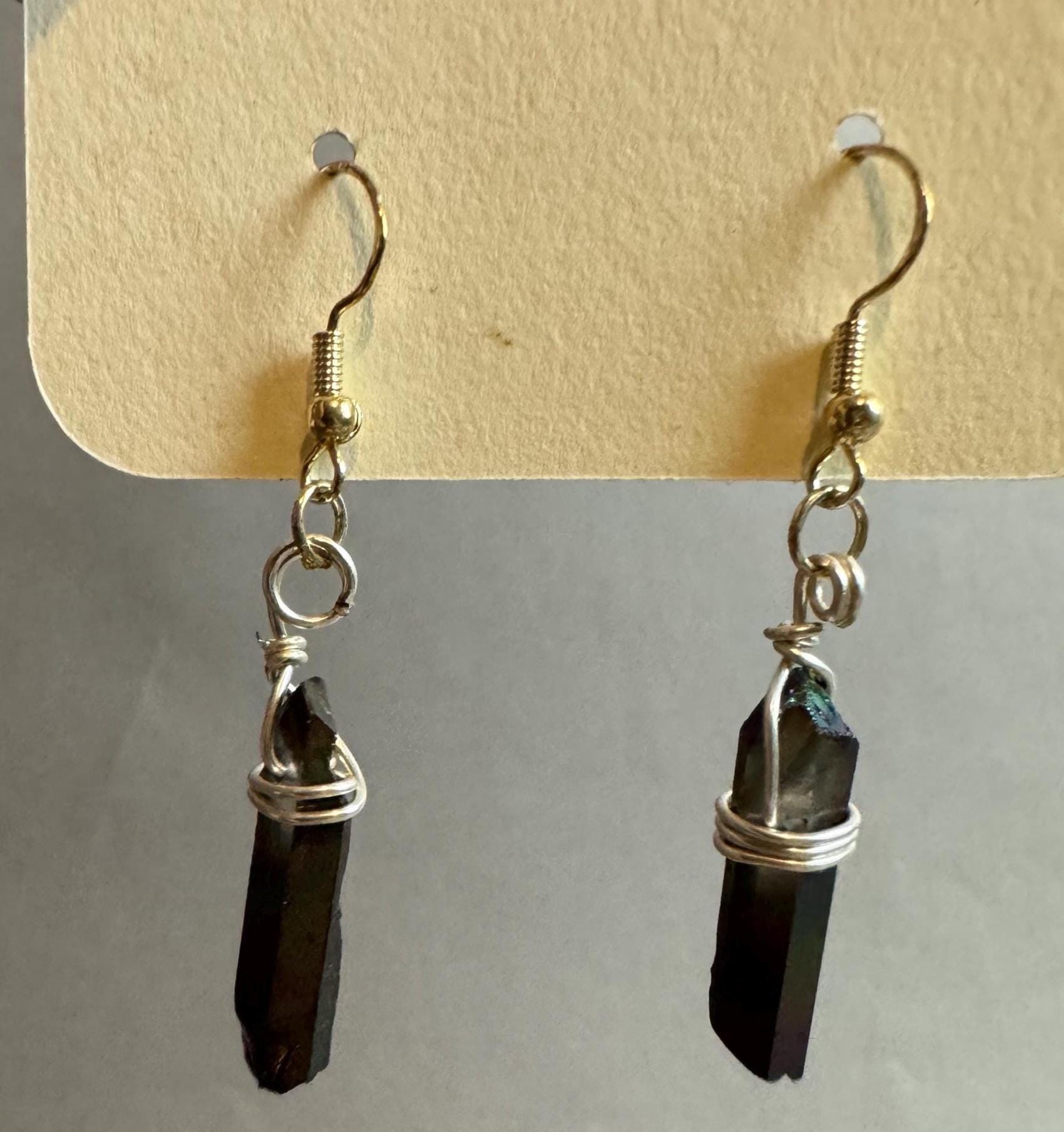Show off your darkside or lightside with these Wire Wrapped "Kyber" crystal earrings. Available in Gold or Silver wrapped