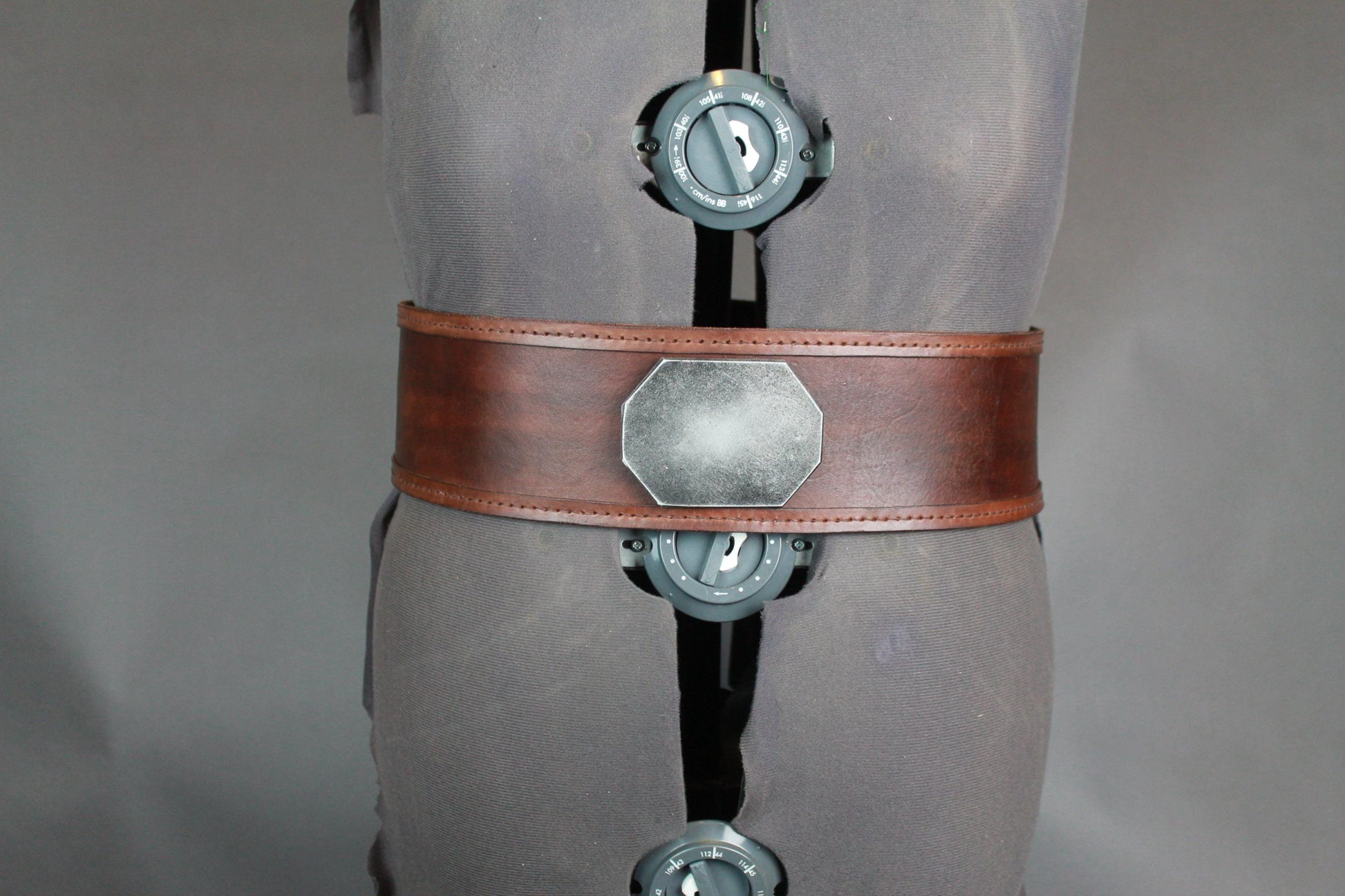 Metal Buckle will be weathered and non-functional. Veg Tan leather Belt will have velcro closure in back and a belt keeper to cover.