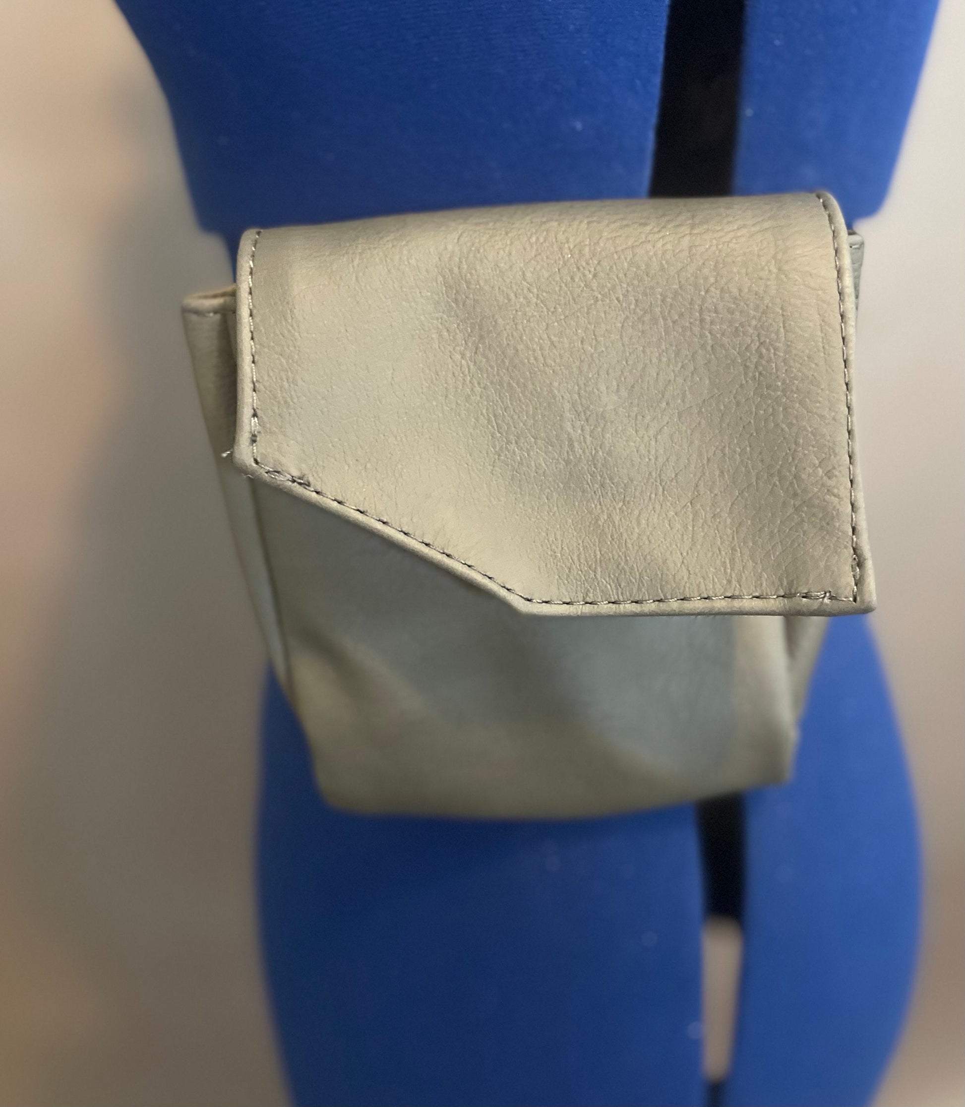 Belts will be made from a grey leather hide, and have a velcro closure that can be hidden by the pouch. Front will have a metal O ring. Pouch has both Black and Gray options and will close with hidden magnetic closure.